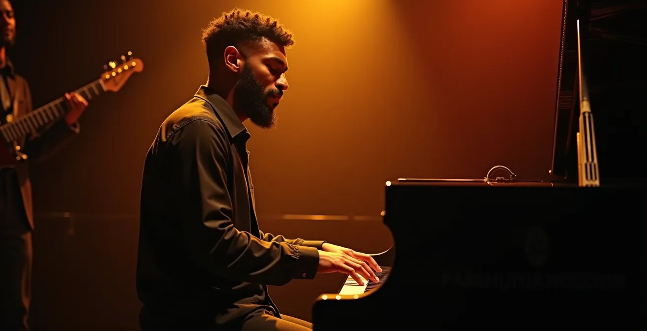 Contrairement à l’idée reçue, nul besoin d’être un expert en théorie musicale pour vibrer au son d’une improvisation de jazz. La clé n’est pas d’analyser les notes, mais de percevoir la musique comme une conversation vivante. En vous concentrant sur l’écoute, les signaux non-verbaux entre les artistes et la narration d’un solo, vous découvrirez une richesse émotionnelle et un dialogue captivant, bien plus accessibles qu’une partition complexe.