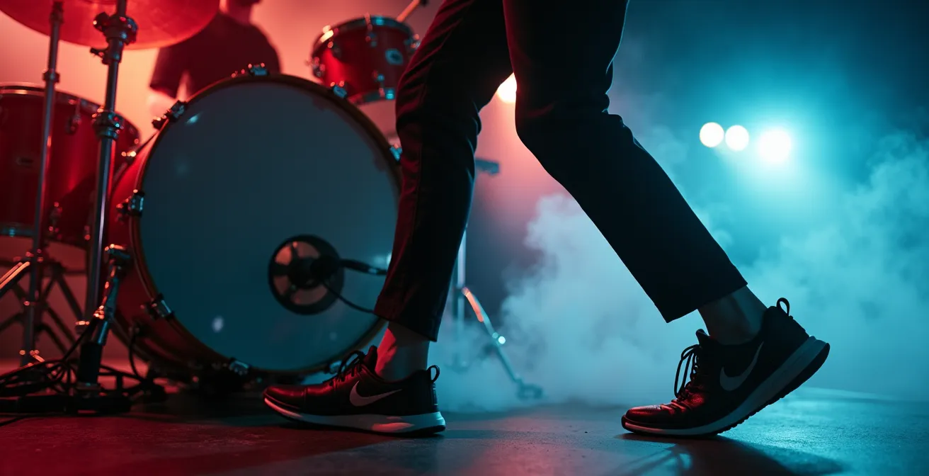 Et si la véritable clé n’était pas dans la force brute, mais dans l’intelligence du mouvement ? Si, pour devenir un démon de la double pédale, il fallait penser non pas comme un musicien, mais comme un athlète de haut niveau ? Cette approche considère chaque partie de votre corps et de votre matériel comme un maillon d’une chaîne cinétique. L’objectif n’est plus de « pousser plus fort », mais de maîtriser une série de micro-optimisations pour atteindre une efficacité maximale avec un minimum d’effort.