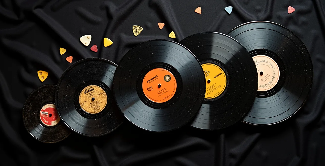 L’idée n’est donc pas de retenir 5 titres, mais de comprendre la révolution en cours. Prenez un album phare de 1970, comme « Black Sabbath » de Black Sabbath ou « Led Zeppelin III ». Au lieu de l’écouter passivement, disséquez-le. Appliquez une méthode d’écoute analytique pour comprendre ce qui se joue. Isolez la section rythmique : la basse et la batterie ne se contentent plus d’accompagner, elles deviennent le moteur lourd et puissant du morceau. Repérez les instruments « étrangers » au rock traditionnel qui font leur apparition. C’est en faisant ce travail d’archéologue du son que vous comprendrez l’ADN de la décennie.